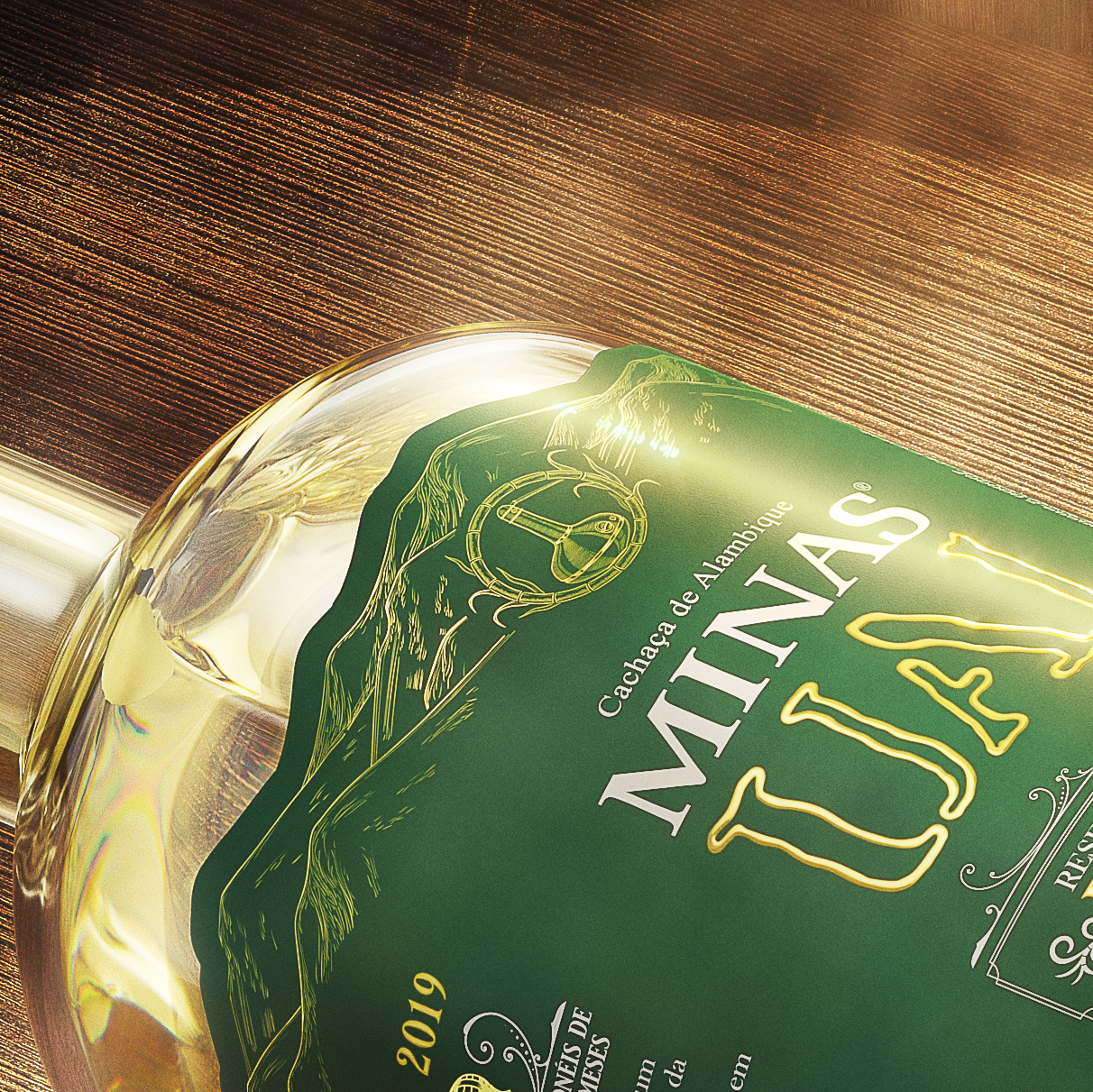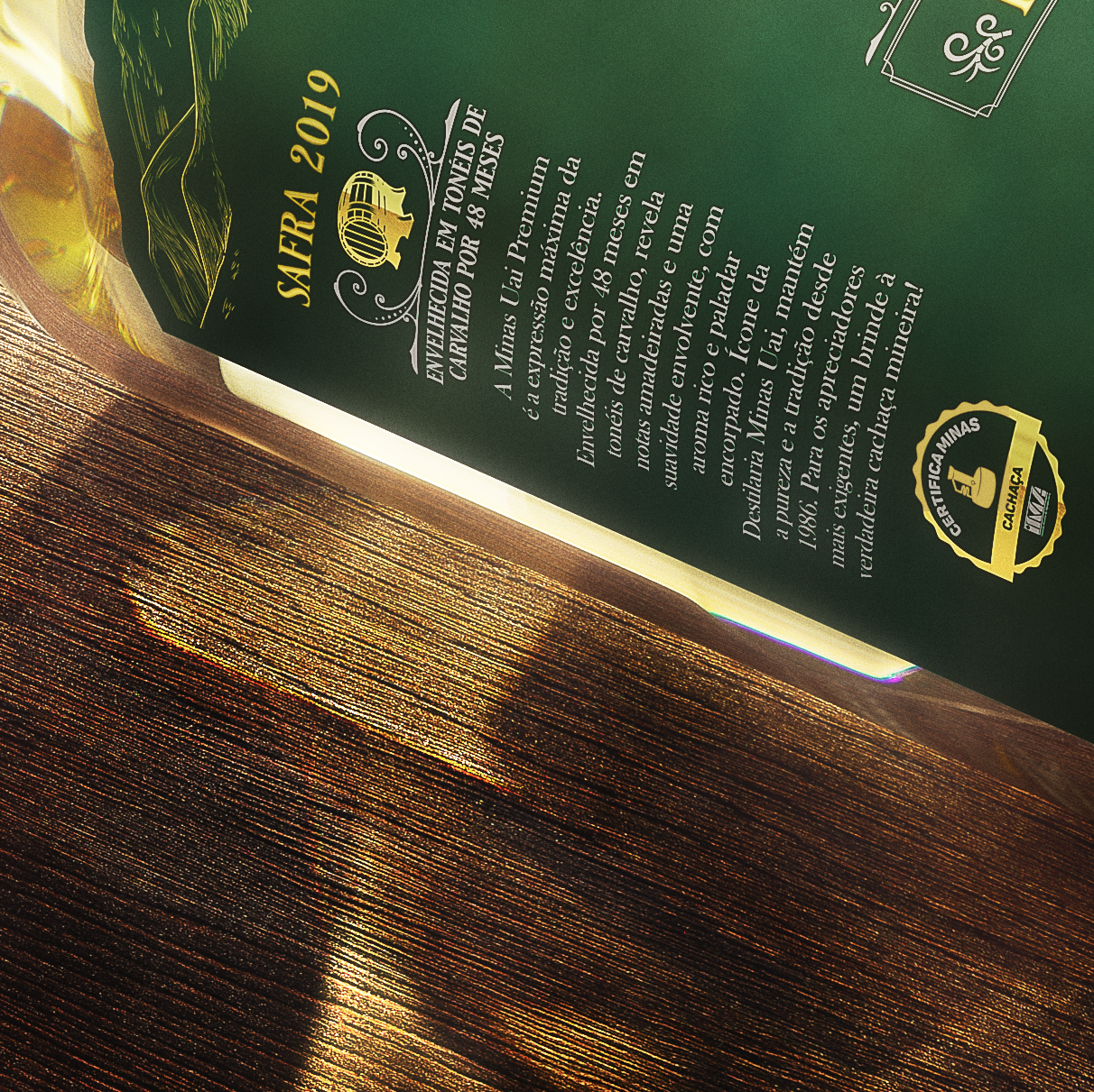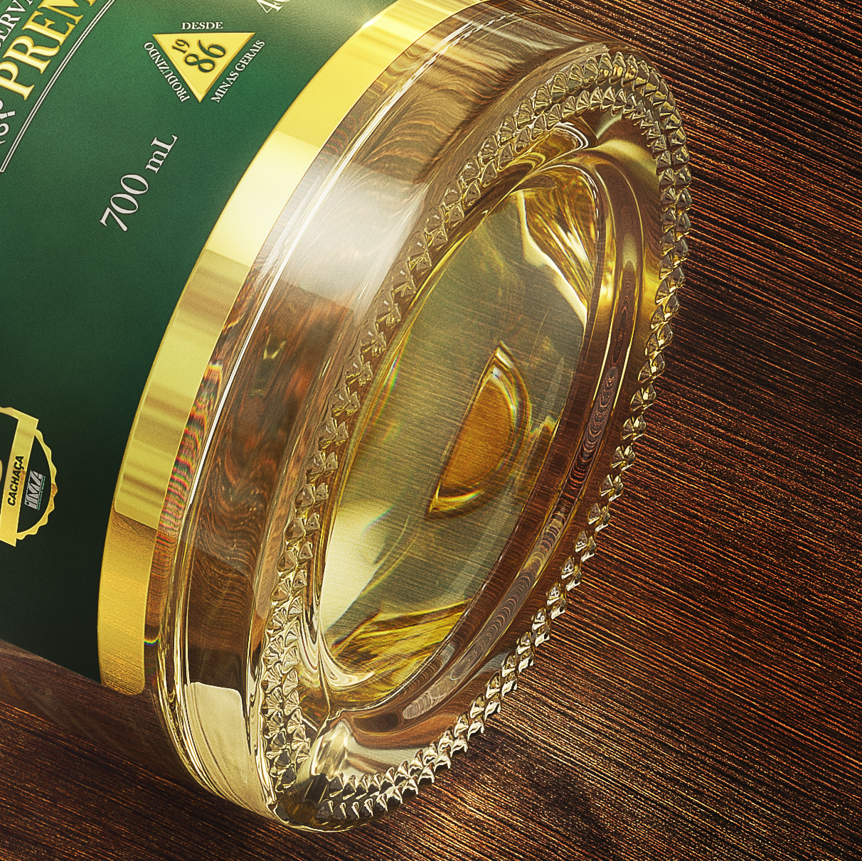 O projeto foi desenvolvido no 3DS Max, com HDR Light Studio para a construção da luz, Corona Renderer para o realismo do render e Photoshop na pós-produção final. O resultado é uma imagem sofisticada e imersiva, que traduz a essência da Cachaça Minas Uai Premium — uma bebida feita com tempo, história e excelência.