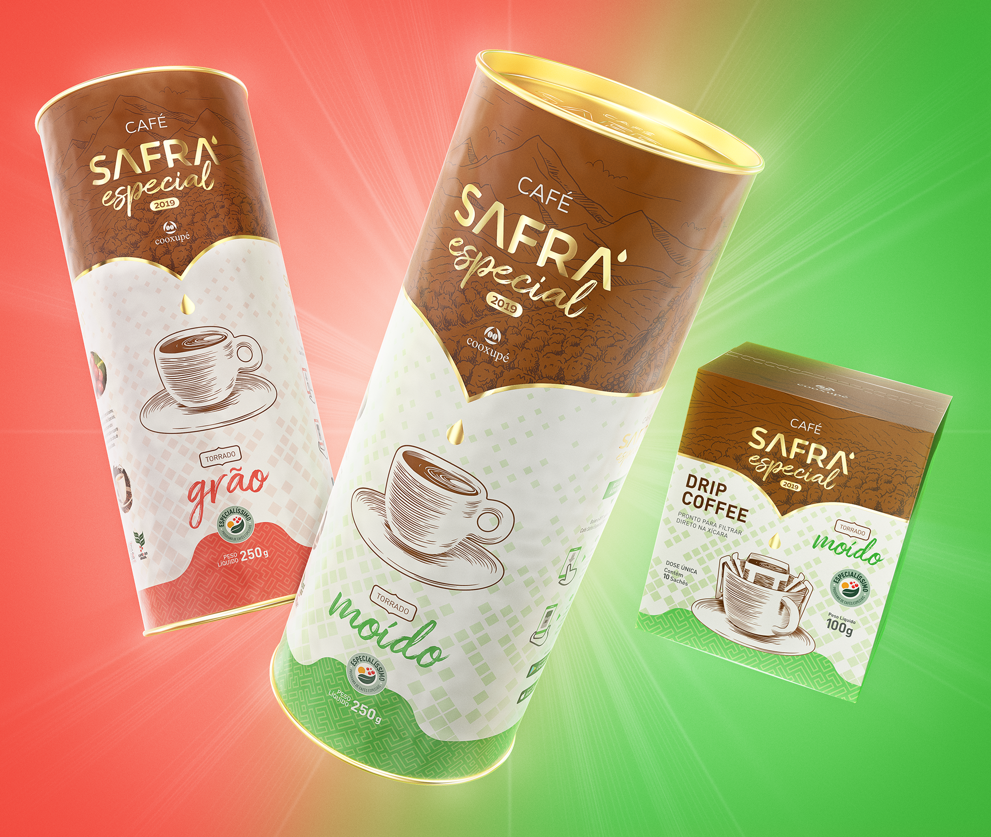 Cliente: Cooxupé | Agência: Visualize Comunicação | Atendimento: Erik Santana | Direção de criação: Rogério Faria | Direção de arte: Diego Silva (vetor) | Design de embalagem: Diego Silva (vetor) | Arte final: Diego Silva (vetor) | CGI e pós-produção: Diego Silva (vetor)
