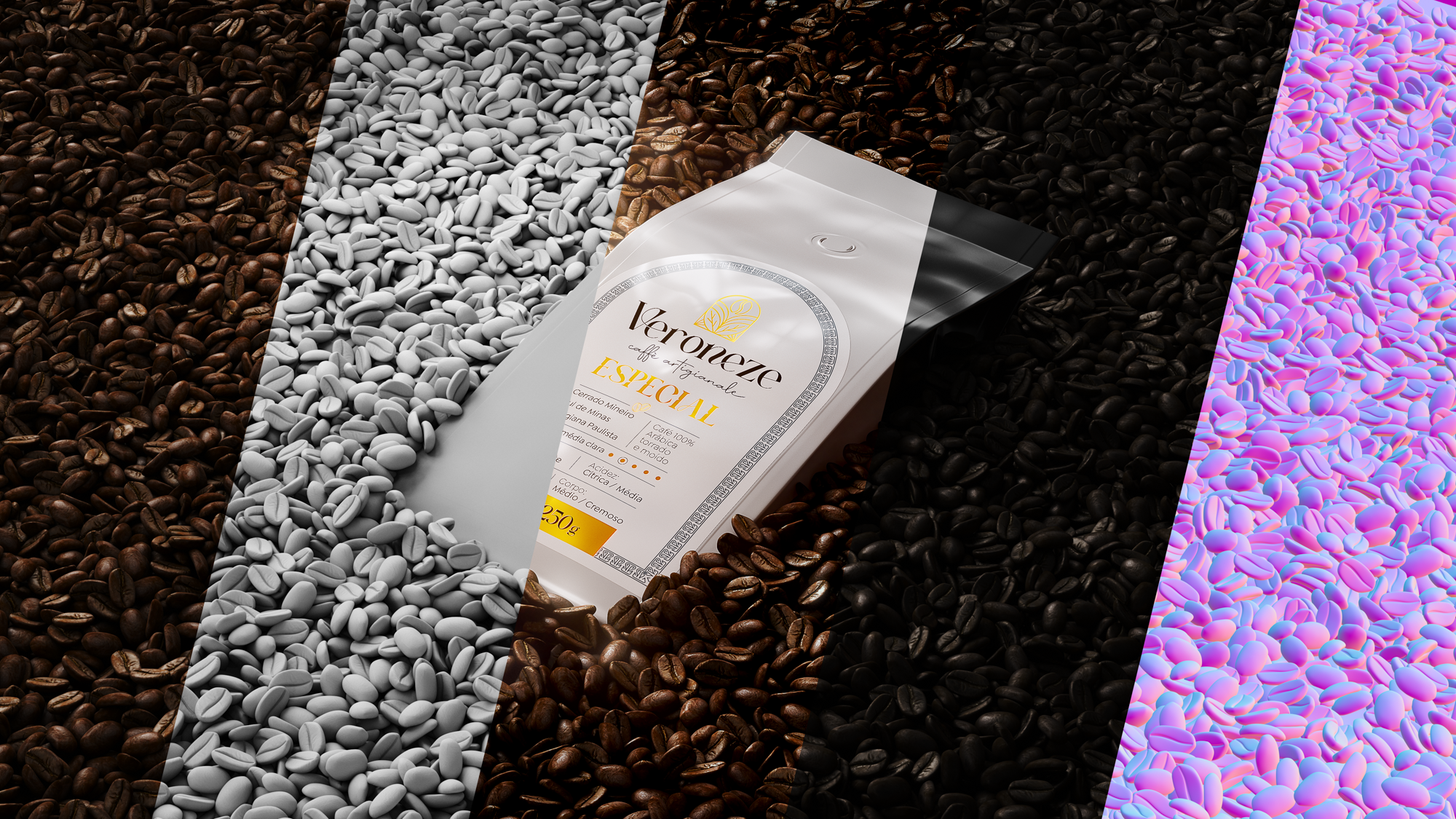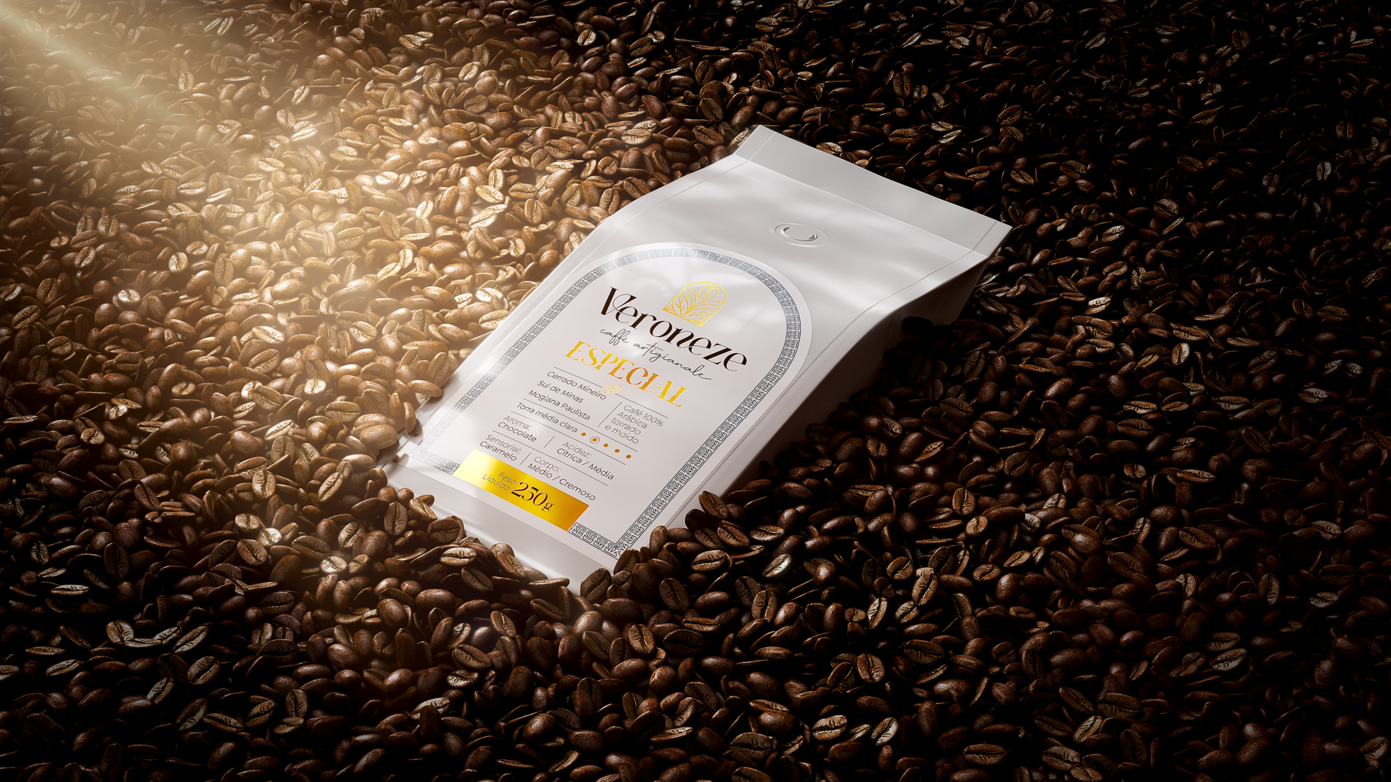 Para o Café Veroneze, a proposta foi criar uma imagem 3D que despertasse o desejo e transmitisse toda a essência de um bom café.