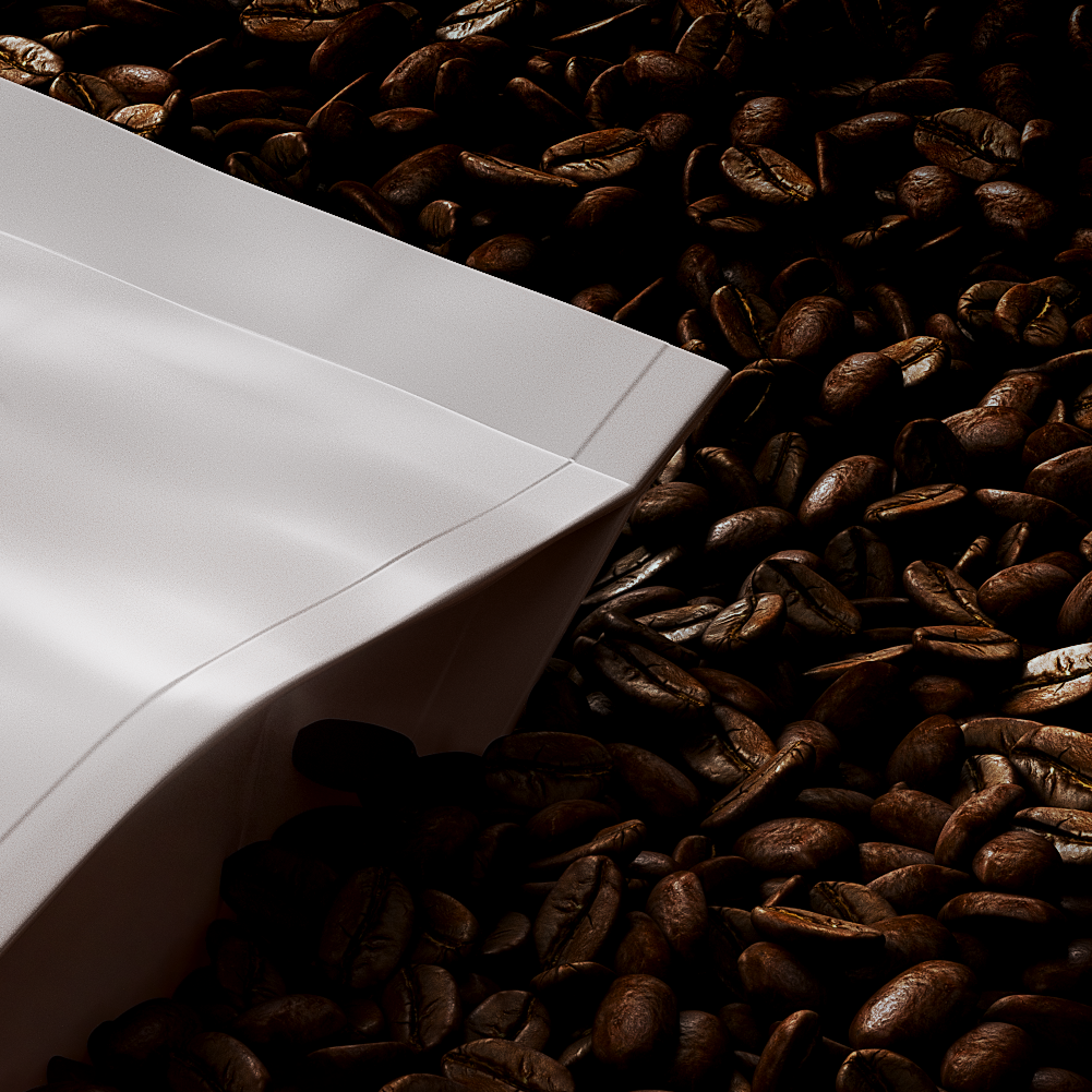Mais de 16 mil grãos de café foram simulados por meio de um sistema de partículas realista, formando uma “cama” que acolhe a embalagem como protagonista da composição. O resultado é uma imagem rica em textura e profundidade, capaz de unir elegância, técnica e emoção.